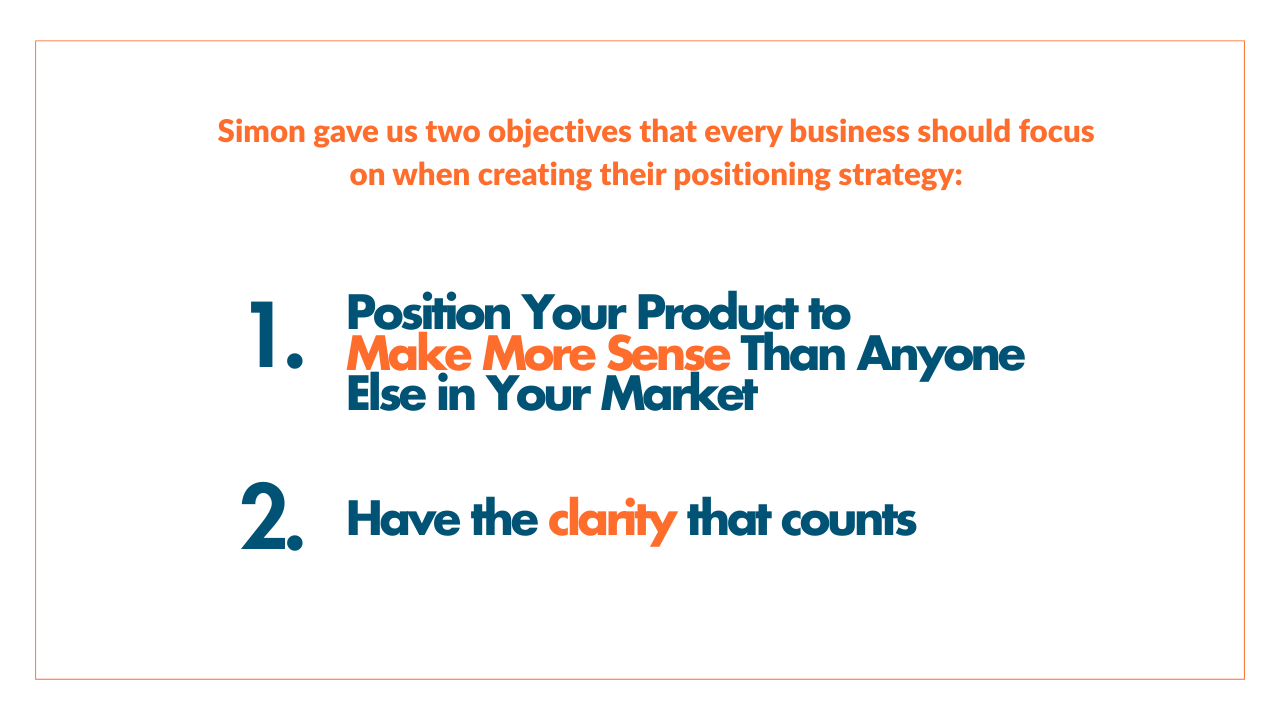 Simon gave us two objectives that every business should focus on when creating their positioning strategy: