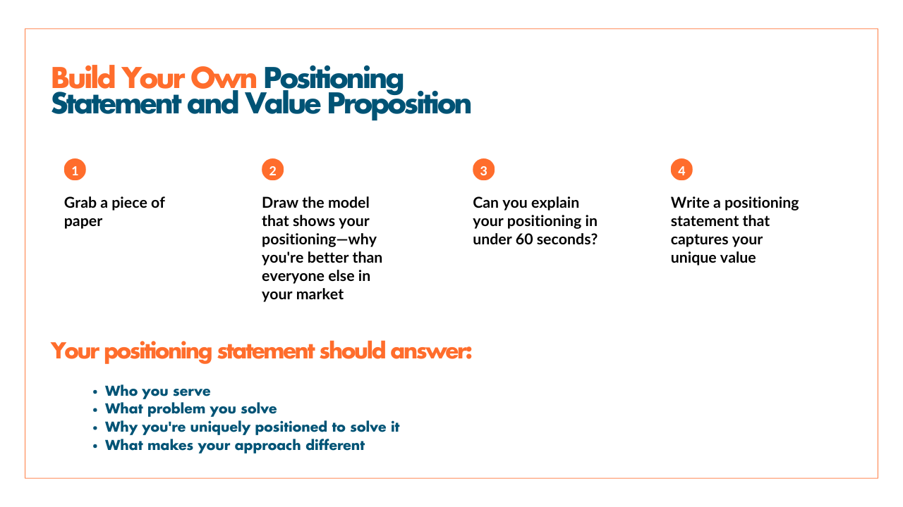 A strong positioning statement backed by a visual framework becomes your most powerful sales tool.